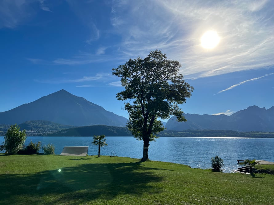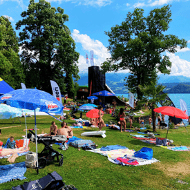 unbeschwerte Stunden am Ufer, lasse dich von der Sonne verwöhnen und kühle dich im glasklaren Wasser des Thunersees ab.
